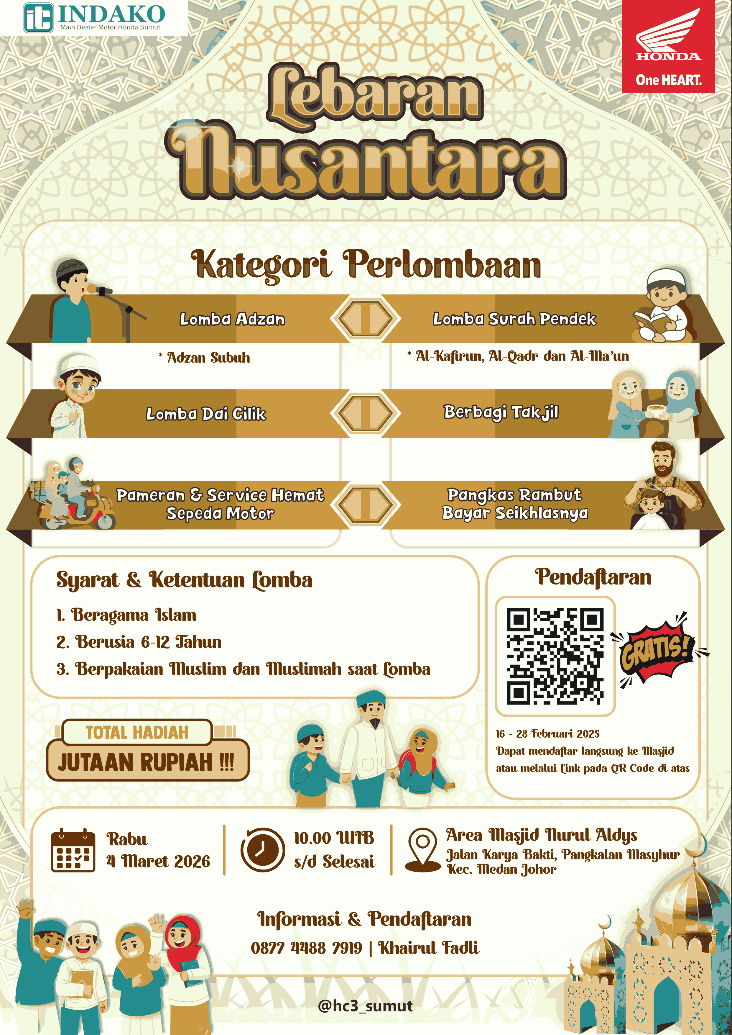 Dalam semangat Ramadan, Sir Salon berkolaborasi dengan HC3 Indako Honda Sumut menggelar kegiatan sosial bertajuk “Berbagi Takjil, Berbagi Kebaikan” di Masjid Nurul Aldys, Kota Medan, pada 4–5 Maret 2026.